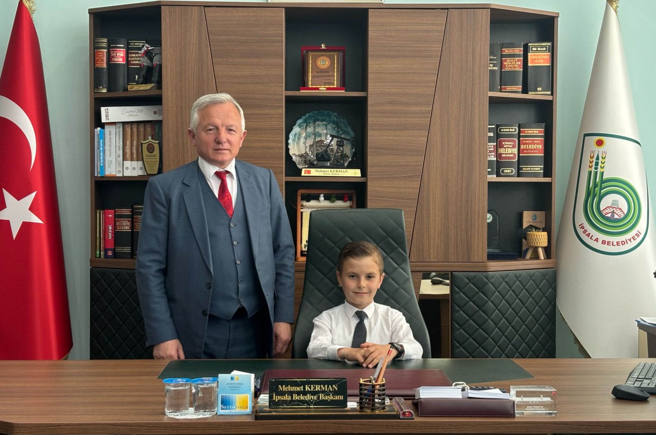 Serhat İlkokulu 3. sınıf öğrencisi Doruk Ali Kılıç, İpsala Belediye Başkanı Sayın Mehmet Kerman’ın makamına temsili olarak oturarak bir günlüğüne belediye başkanlığı görevini üstlendi.